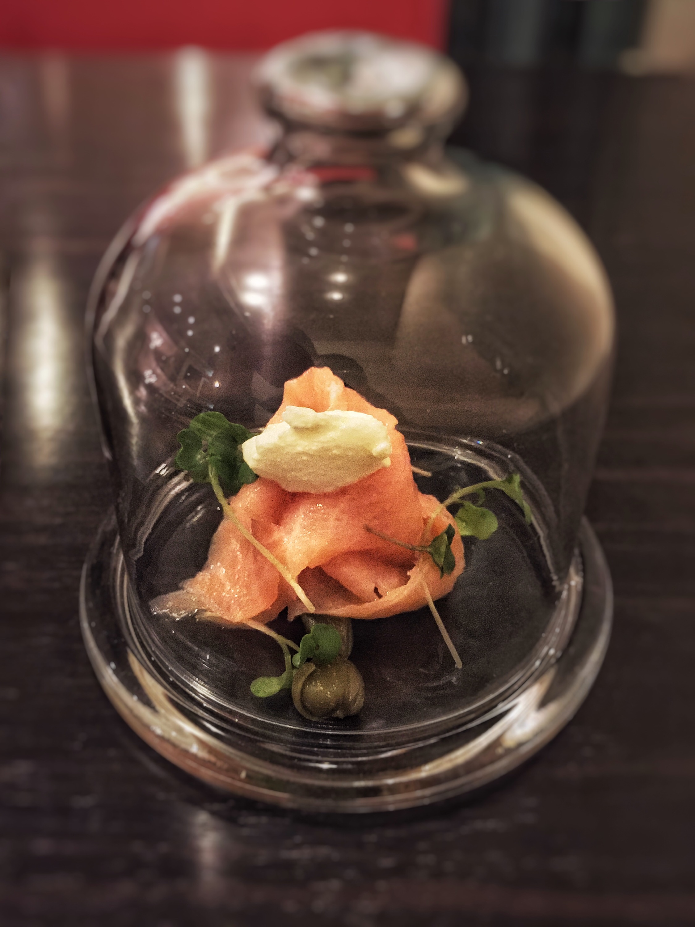 Infused in a bell jar with aromatic flavours ranging from citrus to cinnamon and chives with a cheese after taste hit my senses the minute I opened it.