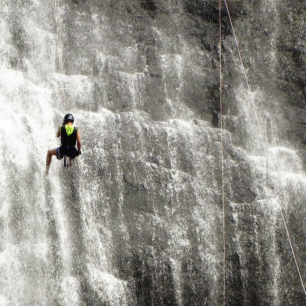What better way than descending 300 feet with a feeble rope and minimum safety gear down a waterfall thrashing against jagged rocks beneath.
