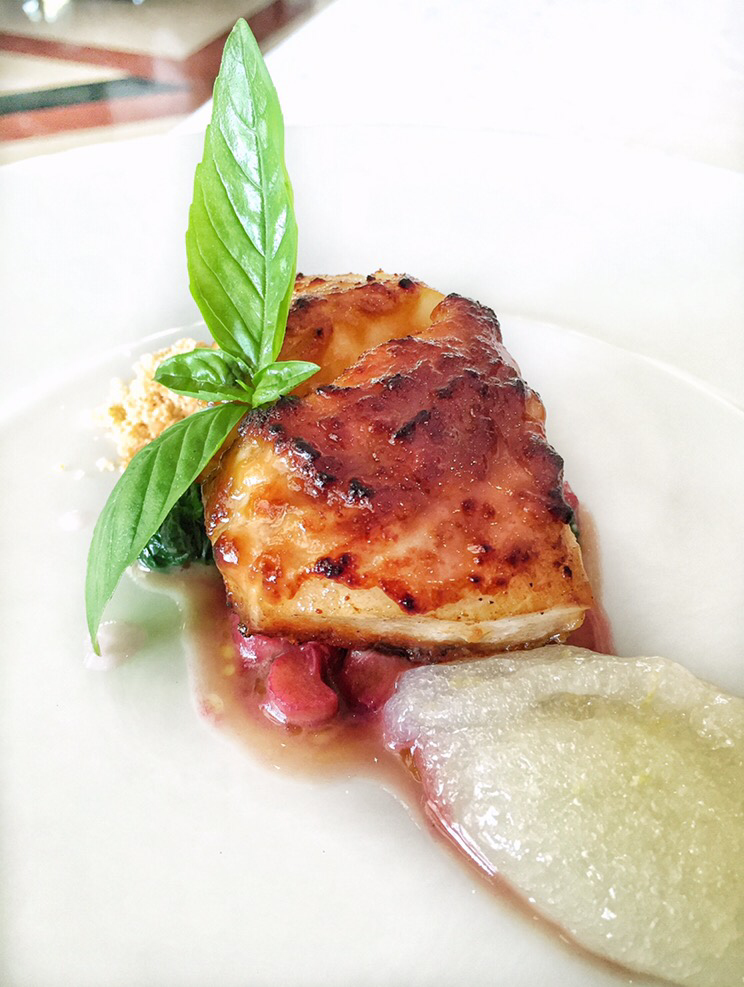 The beauty of a course menu, is one gets to know what’s in tow and I waited in anticipation for the Atlantic Black Cod baked with fermented soy bean,wilted young spinach with a brush of stewed rhubarb soy soil and lemon balm. It begged my mind to demand second serving. Table manners prevailed and I refrained. The infusion and blend of flavour is hard to describe. It’s a must try for sure.