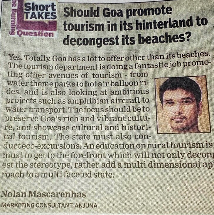 As a consultant, it allows me to lend suggestions and help boost the tourism of our fair state as an influencer, of a different kind of Goa- (that would entail NOT! entertaining last minute requests from ‘friends’ who need passes for Sunburn orSupersonic every December.)It’s for the betterment of Goa- rich in so much heritage and culture, food and traditions, and more importantly blessed with a right balanced ecosystem.