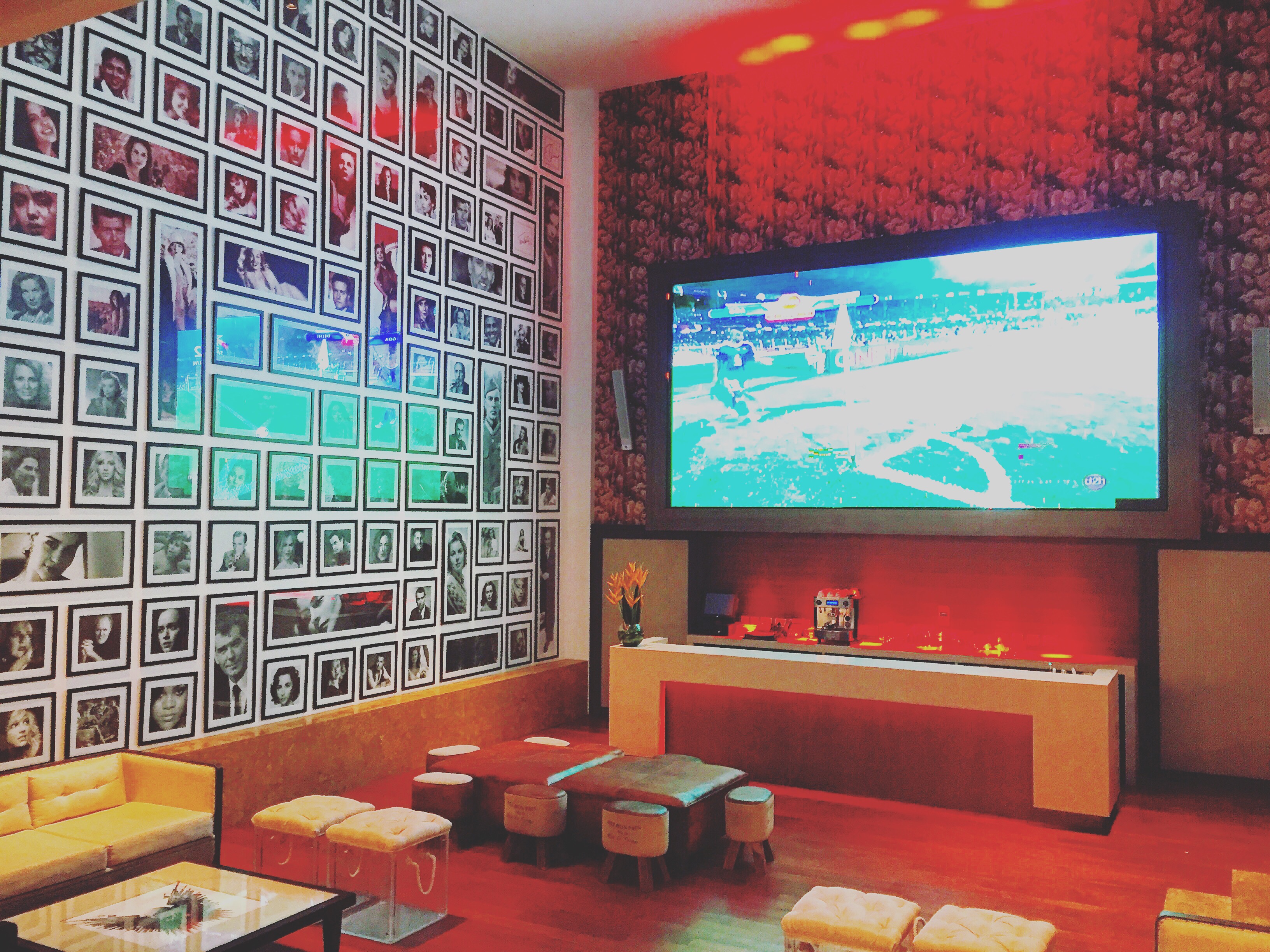 I drive up the very German block design inspired driveway and make my way to the reception. Right then and there I stand with a jaw drop expression. No I did not see Pamela Anderson walk past me, though that is on my bucket list this lifetime, rather was arrested by the ‘Wall of Fame‘ with its ginormous screen at the bar in the lobby- The Heart Bar.