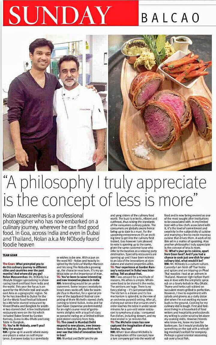 mr. NObody is a lifestyle blogger,showcasing travel and food from India and the world. This year the focus is on quest for the Michelin trail and South East Asia as a region. So far he has travelled to Dubai for the ‘Eat the World Food Festival’ followed by a Michelin starred restaurant by Vineet Bhatia and Bangkok for another two starred chef. A few institutional restaurants were on the list which included Bread Street by Gordon Ramsey, Zuma in Abu Dhabi and Long table in Bangkok.