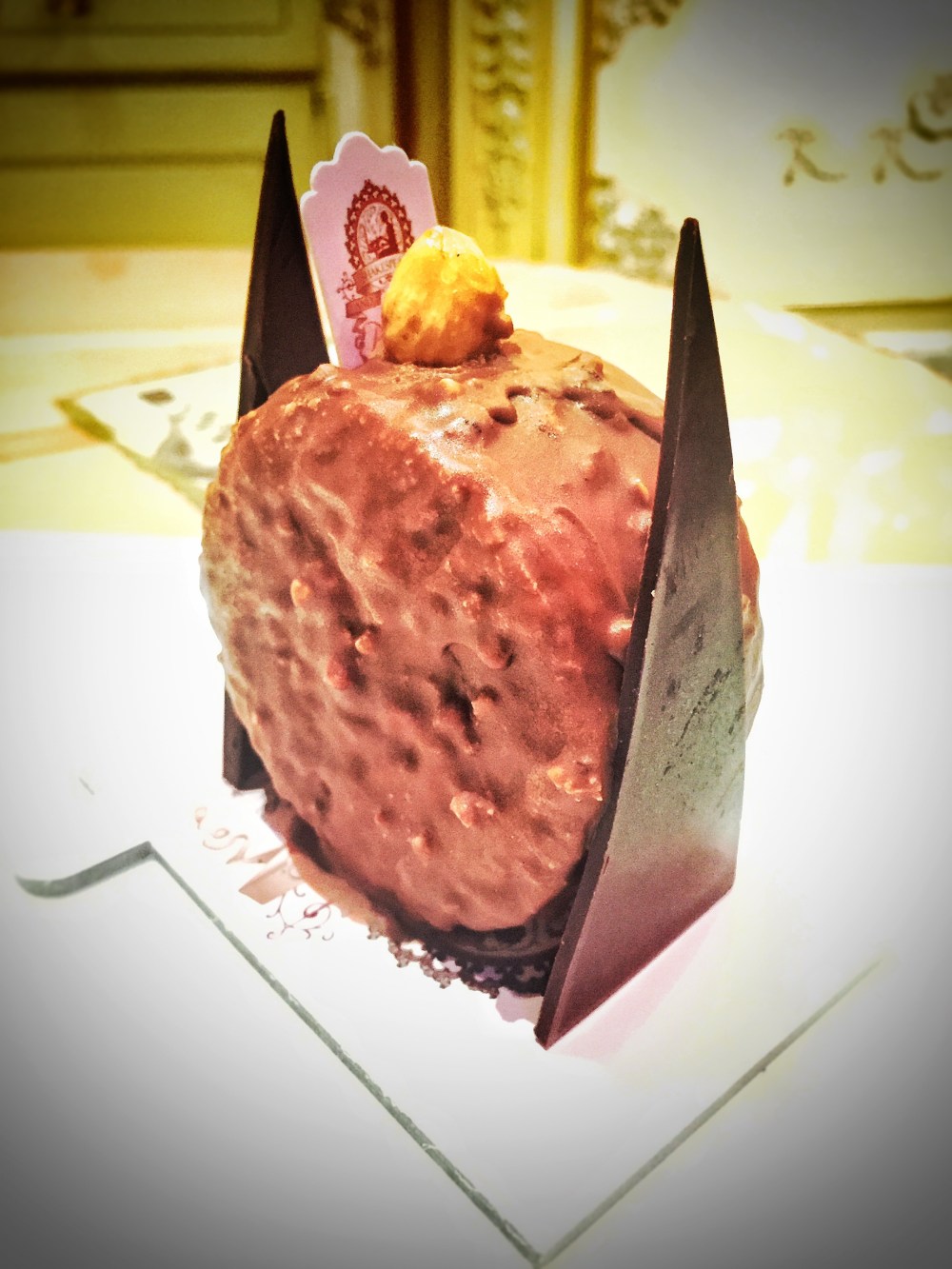 This was NOT intentional. The server did not understand the gravity of the situation, when she mistakenly mentioned the following words;’ Almond Macaronade biscuit laden with hazelnut cream coated with caramelised Hazelnut chocolate coating’ , that sent all my senses into a tizzy much like a pinball machine on power surge with me almost demanding for one in a toned matter of speaking, ‘give me that and no one gets hurt‘.