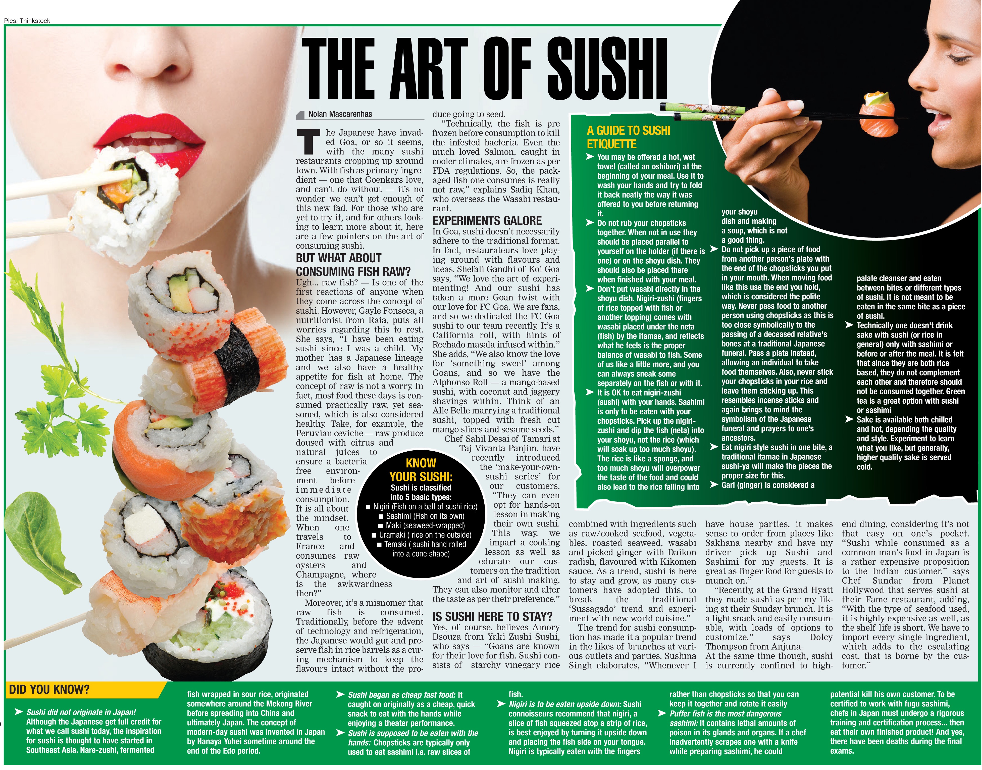 This article encaupsulates The Art of Sushi – a cuisine that is gaining rapid popularity in and around the country and excerpts from some of the culinary stalwarts of the art.