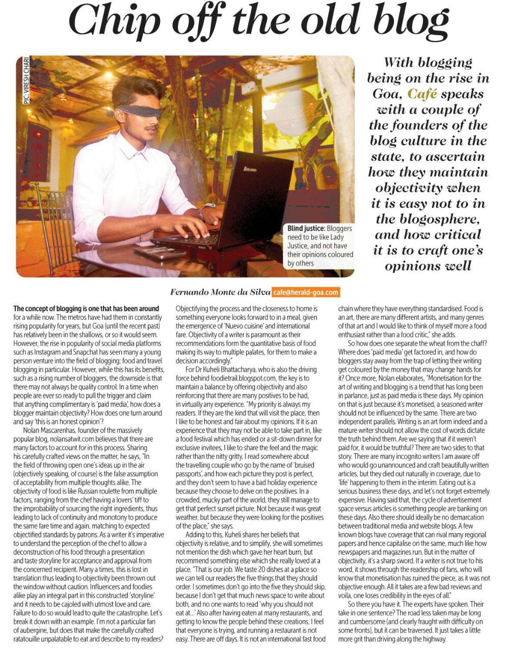 A beautiful piece written by a talented fellow blogger for OHeraldo in Goa- Fernando Monte da Silva and I share a few thoughts on the subject.