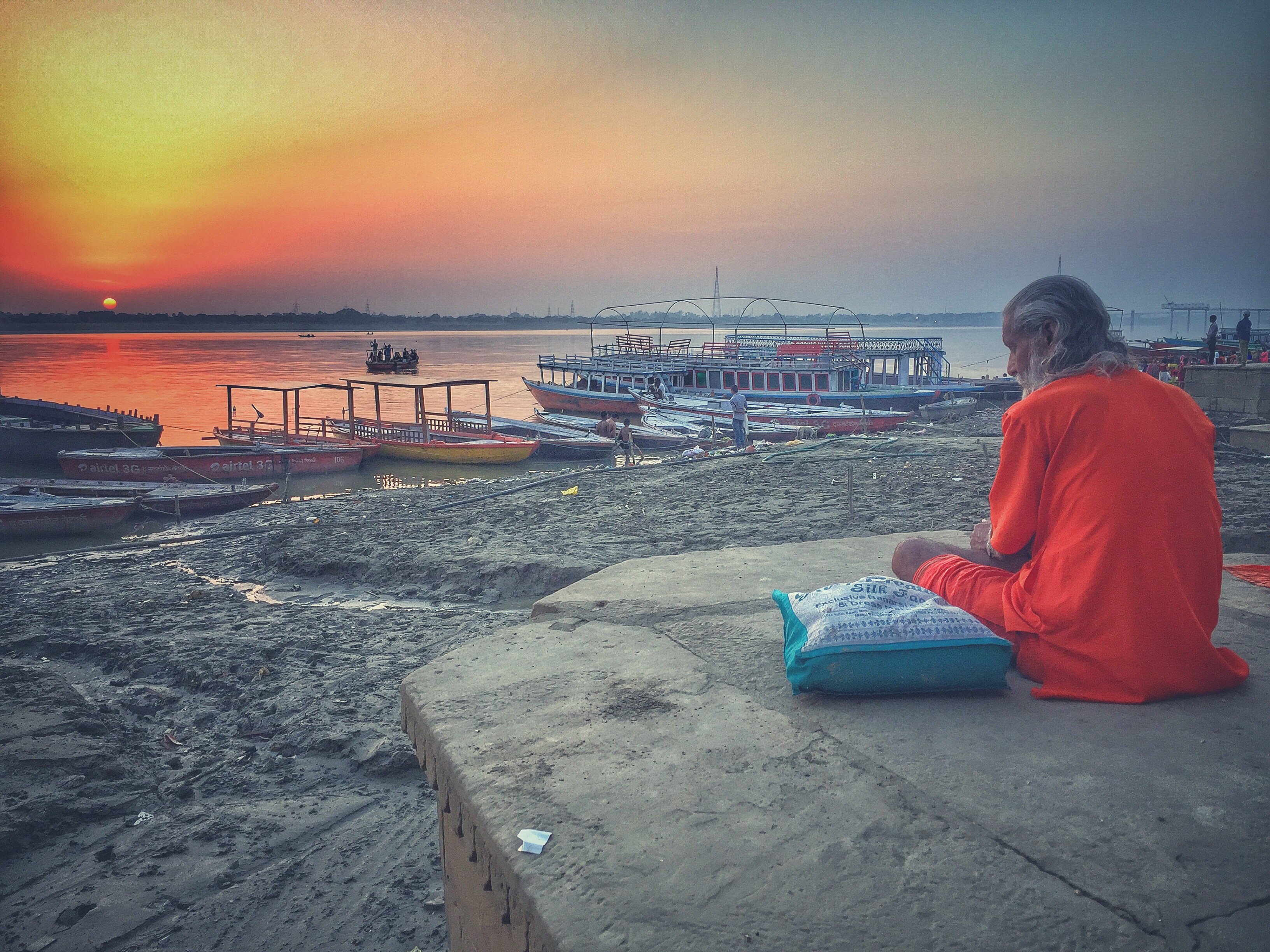 From sages and mystics to a dip in the Holy Ganga to the Sadhu deep in trance, the city is bustling with activity at the crack of dawn. A man, wrapped in a white shroud, his head freshly shaved, sits mournfully and watches a burning pyre. A bamboo ladder, supporting another body, its shape visible under an orange shroud, makes its way to its final immersion in Mother Ganges. Cows standing idly, then settle down amidst the debris to chew cud. The omnipresent pye-dog picks its way down to the water’s edge. A purple kite flown by a child on a nearby roof climbs impossibly high into the sky. A burning candle, surrounded by flowers, someone’s offering, bobs along in their wake. Rub the sleep of one’s eyes and make way to the banks of the Ganga to see the ritualistic salutations to the elements via traditional beliefs. A morning snapshot for the senses.