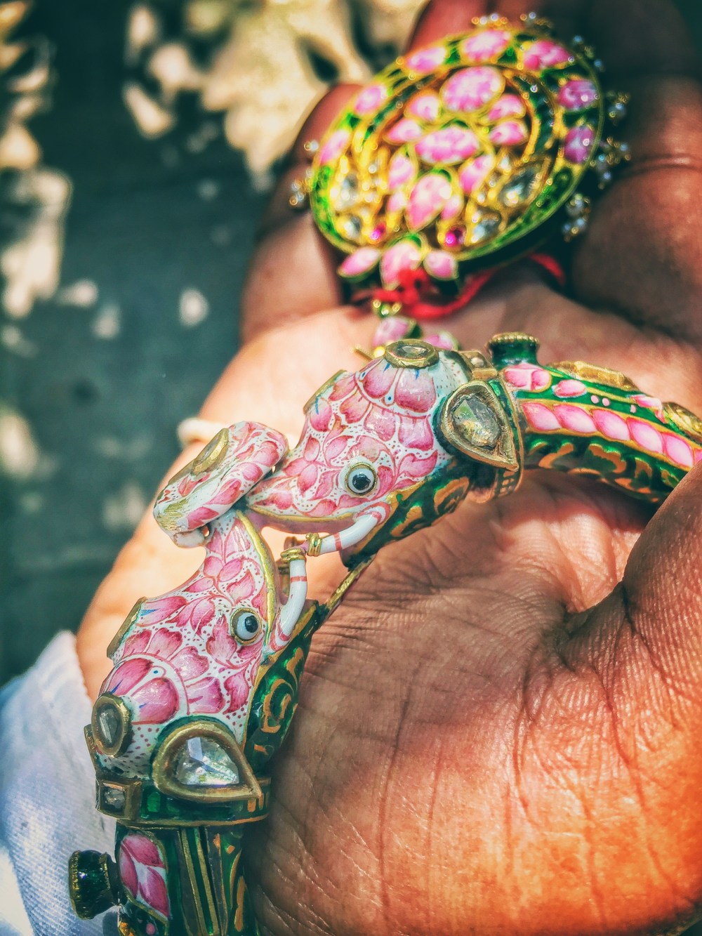 Ever had that moment, when the beauty of an object left you speechless? Ponder and revel in Meenakari artwork. Expensive indeed, this art form was invented by Iranian craftsmen during the Sasanied era and Mongols spread it to India and other countries. Its name is derived from ‘Mina’, referring to the azure colour of heaven.
