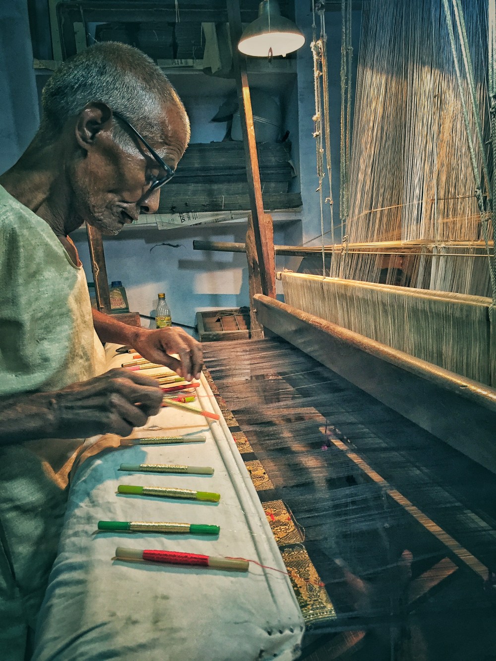 The Silk Puppeteers are the weavers from an era past, entrusted with the delicate ‘zari‘, brocade work of the intricate Benaras sarees. During the Mughal period around the 14th century, weaving of brocades with intricate designs using gold and silver threads became the speciality of Banaras. Depending on the intricacy of its designs and patterns, a saree can take from 15 days to a month and sometimes up to six months to complete. With no room for error, and precision at its finest hour, these master weavers spin stories via silk.