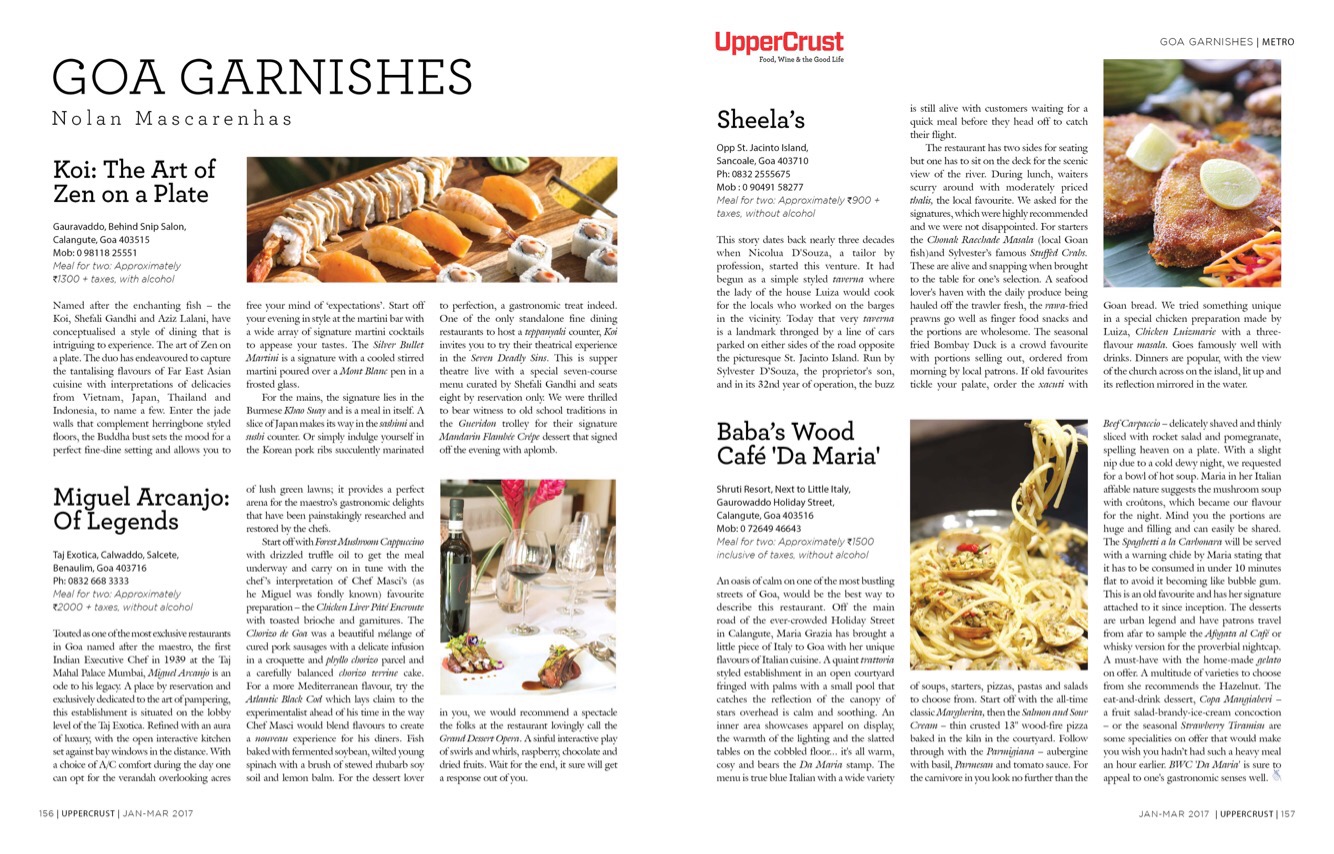 Read all about the quarterly round up of restaurant showcases in and around Goa- from Far East Asian Cuisine to Mediterranean Nostaligia in the latest edition of Upper Crust. Grab your copy today.