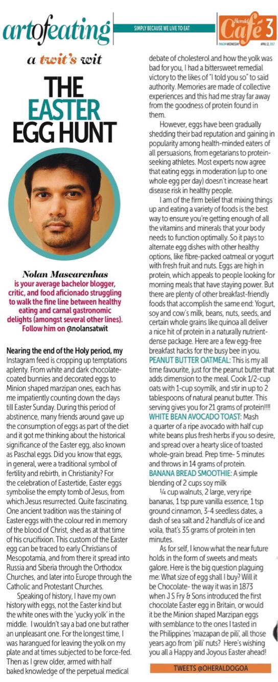 Speaking of history- I have my own history with eggs, not the Easter kind but the white ones with the ‘yucky yolk’ in the middle. I wouldn’t say a bad one but rather an unpleasant one. For the longest time I was harangued for leaving the yolk on my plate and at times subjected to be force-fed. Then as I grew older armed with half baked knowledge of the perpetual medical debate of cholesterol and how the ‘yolk’ was bad for you, had a bitter sweet remedial victory to the likes of “I told you so” to said authority. Memories are made of collective experiences and this had me stray far away from the goodness of protein found in them.